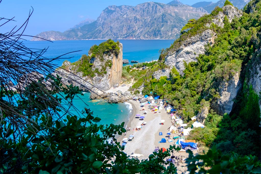 Chilidou beach is indeed one of the most beautiful Greek beaches, and the most popular in Evia island. An island that you don’t need to take a ferry to get there, as you could pass Chalkida bridge, only 1h from Athens, and then heading north, 135km in total from Athens. There are so many things to do in the area, such as the trekking in Stropones canyon, an easy-level hike that starts from Steni, a very beautiful mountainous village of Evia and ends up at Chiliadou beach to swim. You can even climb up to the peak of Dirfys mountain, the “Greek Fuji” as local hikers call it. It’s perfect even for a day trip from Athens, but we highly suggest to add some more days in your plan to explore Evia. Have in mind that there is also a smaller nude beach in Chiliadou, as well the location is really popular among free campers, so the weekends of summer will be really crowded.