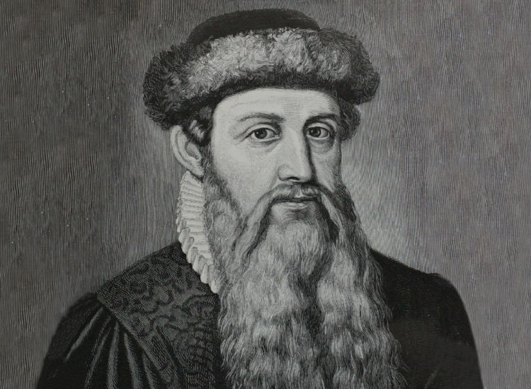 Johannes Gutenberg, known in Greece as John Gutenberg was the German inventor of  printing, born on 1398 and died on February 3rd of 1468.