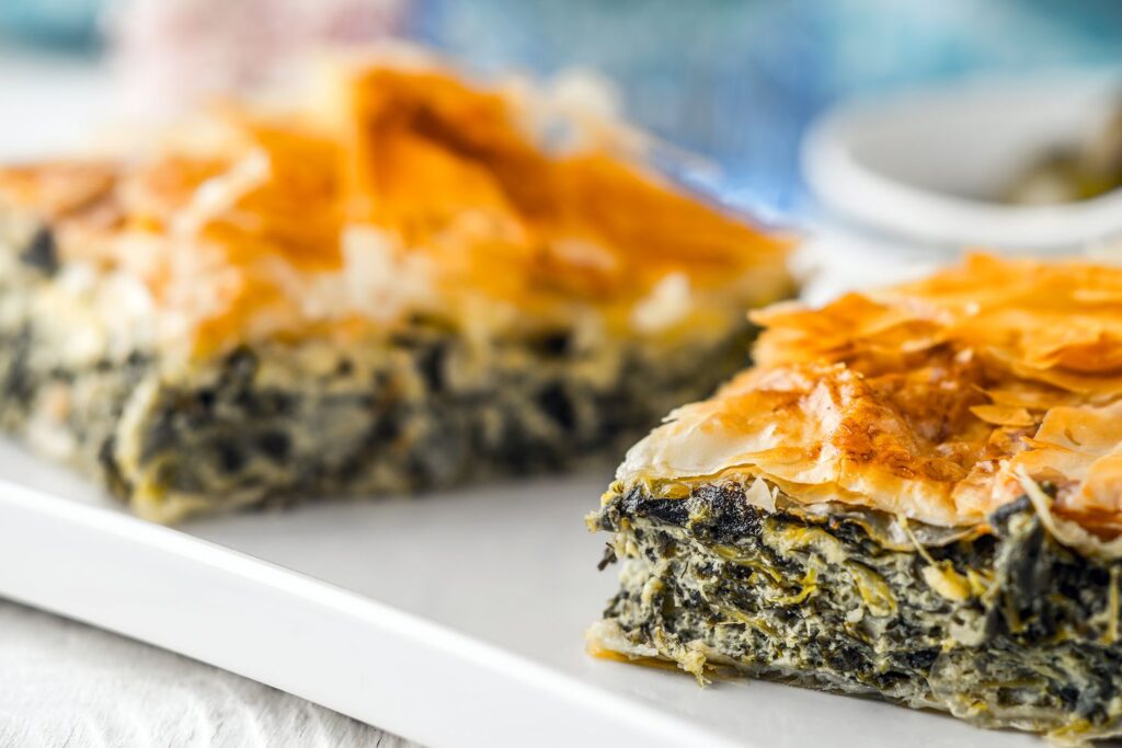 What It Is: Spinach pie (spanakopita) and cheese pie (tiropita) made with phyllo pastry.
