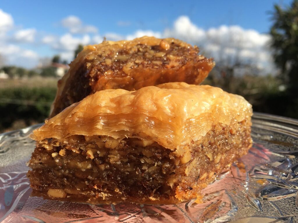 What It Is: A sweet pastry made with layers of phyllo, nuts, and honey or syrup.