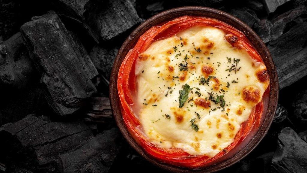 What It Is: Bougiourdi is a delicious meze made from baked feta cheese, tomatoes, and green peppers, often topped with a bit of olive oil and oregano. The dish is served hot, with the feta melting into the tomatoes and peppers, creating a rich, flavorful dip.
