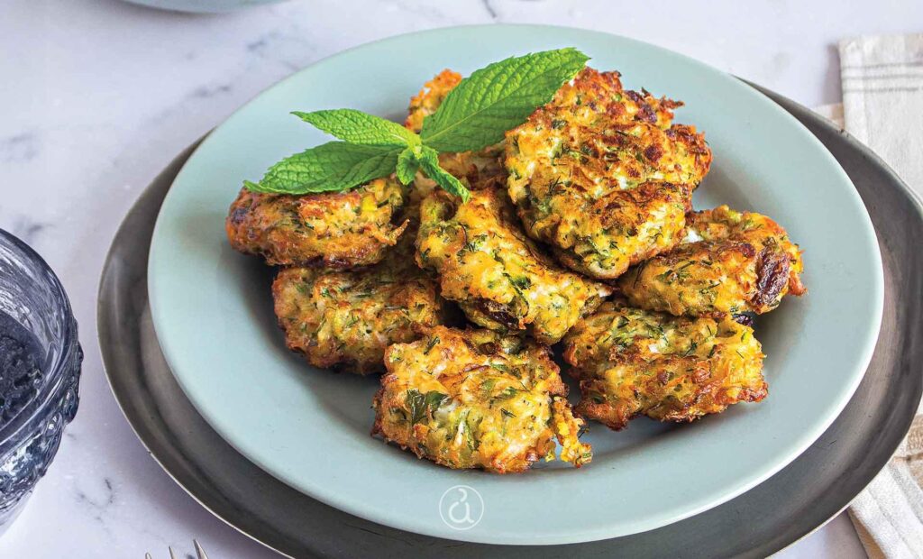 What It Is: Fried zucchini fritters made with grated zucchini, herbs, and feta cheese.