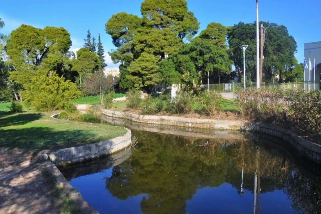 What makes Goudi Park stand out is the impressive water route it has. It takes the form of a small river that flows as a waterfall from the playground. You will see it ending in the northern part at the height of the listed building. The waterway is about 300 meters long and two wooden access bridges have also been placed there.