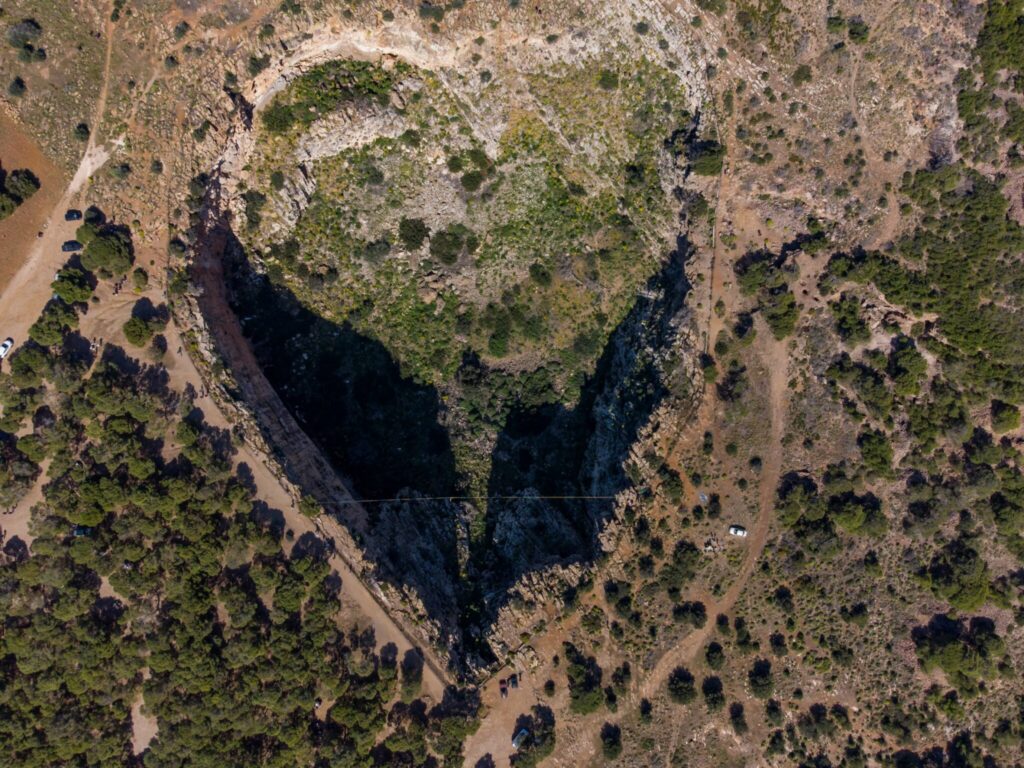 In a beautiful pine grove full of wooden picnic tables and overlooking the sea towards Makronissos island is the Egkolo Chaos. Shortly after the mountain village of Agios Konstantinos (Kamariza) you will find a sign that will lead you there. This unique sinkhole is one of the most impressive sights of the area. It is a natural monument that probably originated from a cave roof collapse. It is over 50 metres deep and is now fenced off for safety reasons, but you can get close enough to admire the curious sight. The chasm is also called “Kitsos’ Chaos” after the famous robber who is said to have operated in the area in the 19th century. Its heart-shaped shape has given it a special romanticism and legend has it that it is the result of a meteorite fall. You can walk around the chasm without difficulty, as there is protective barbed wire everywhere.